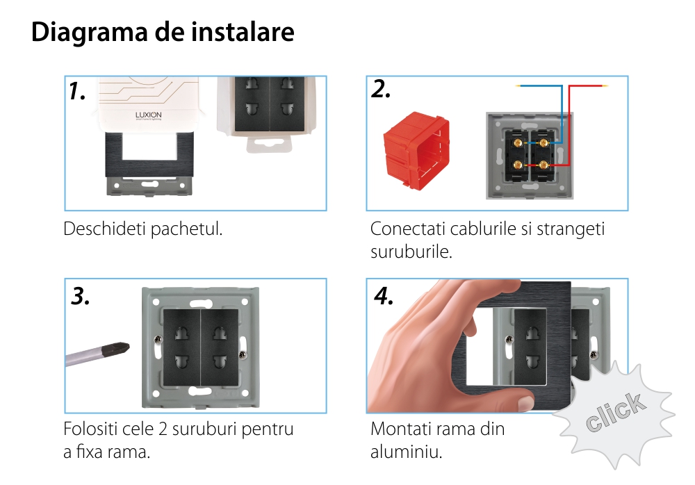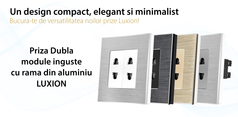 Prizele LUXION se diferentiaza prin design-ul compact, elegant si minimalist. Sunt versatile, dispun de protectie pentru copii, iar tehnologia de ultima generatie favorizeaza economisirea de energie. Structura este durabila, iar prizele nu se decoloreaza in timp. Este un produs practic, fabricat din materiale de calitate si rezistent in timp, ce ofera utilitate si confort casei tale.