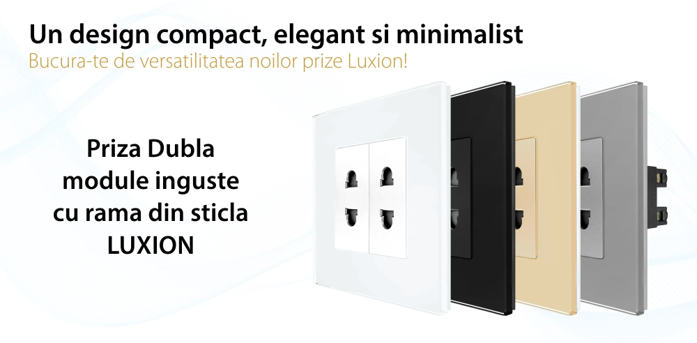 Priza Dubla cu Module Inguste cu Rama din Sticla LUXION SmartElectro IntelligentHouse