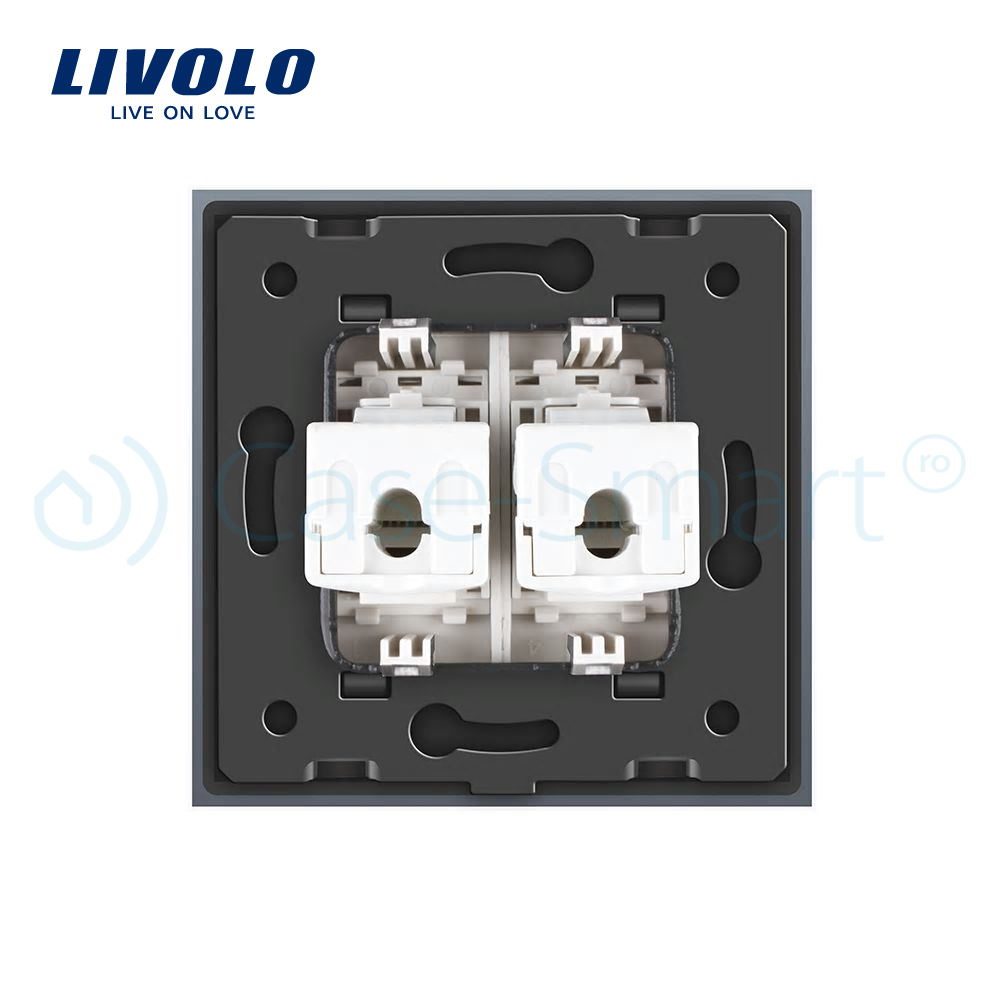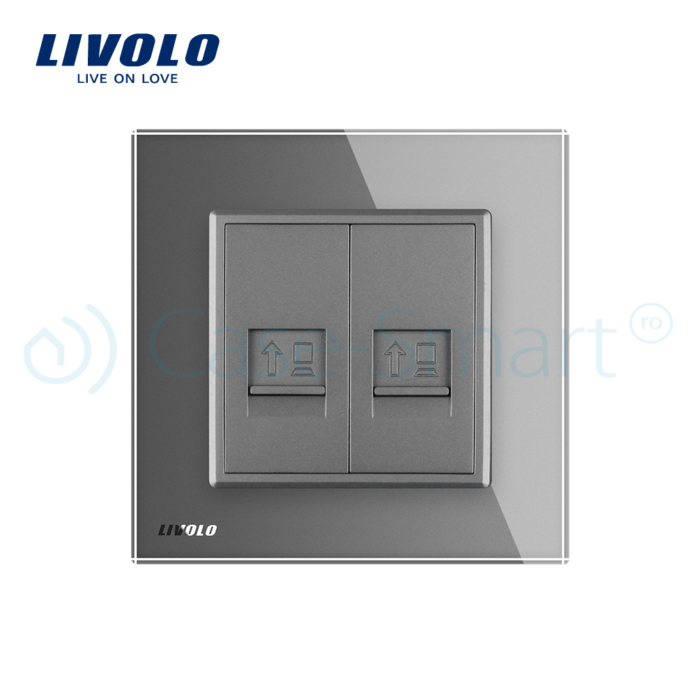 Priza dubla internet Livolo cu rama din sticla SmartElectro IntelligentHouse
