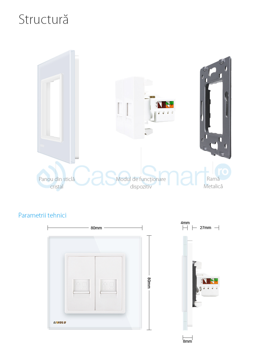 Specificatii Priza dubla internet Livolo rama sticla