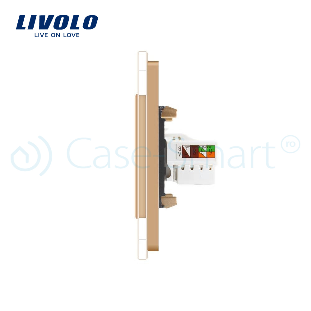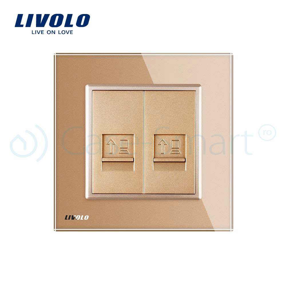 Priza dubla internet Livolo cu rama din sticla SmartElectro IntelligentHouse