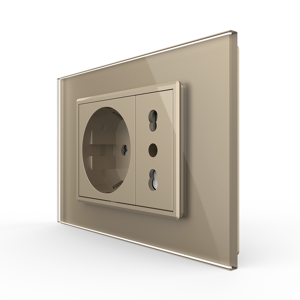 Priza dubla italiana Livolo cu rama din sticla - standard italian SmartElectro IntelligentHouse