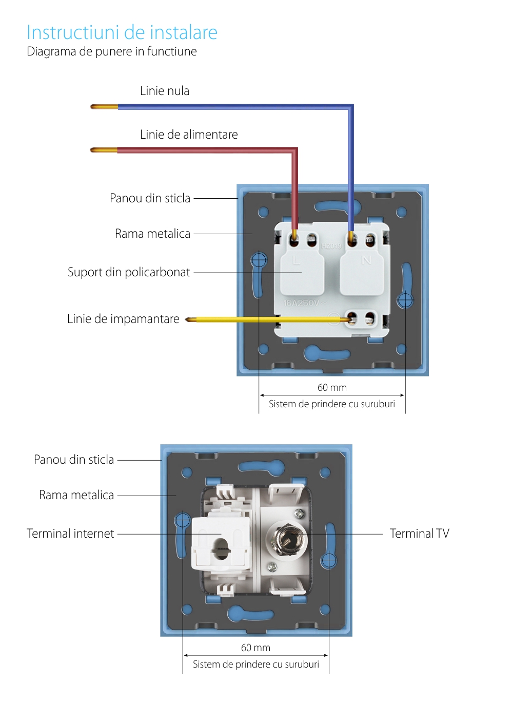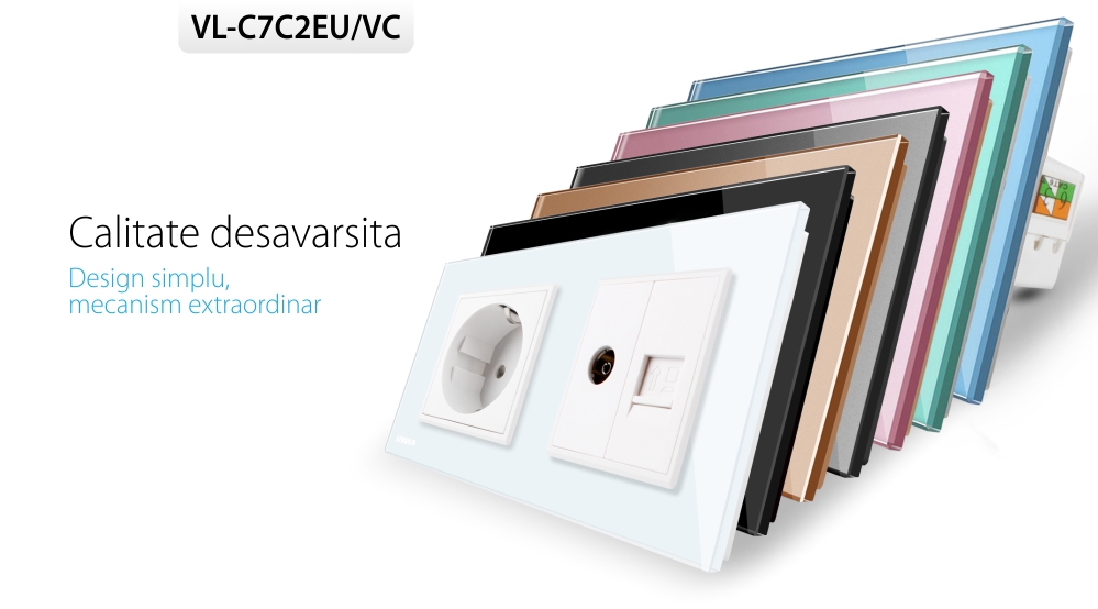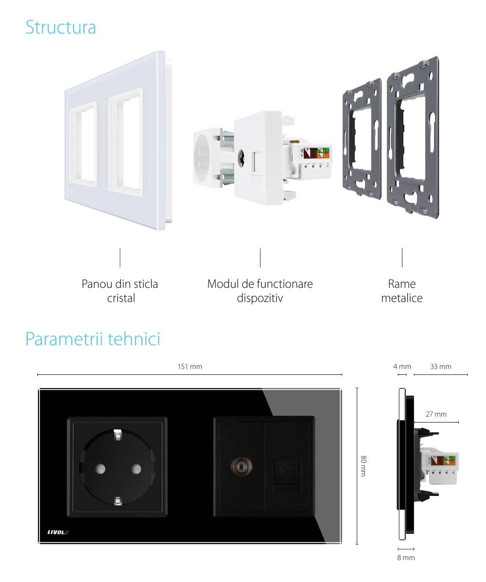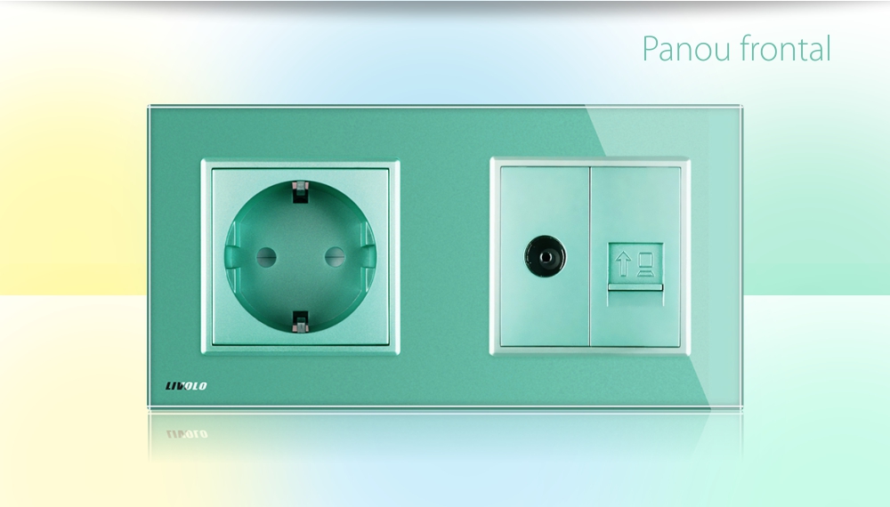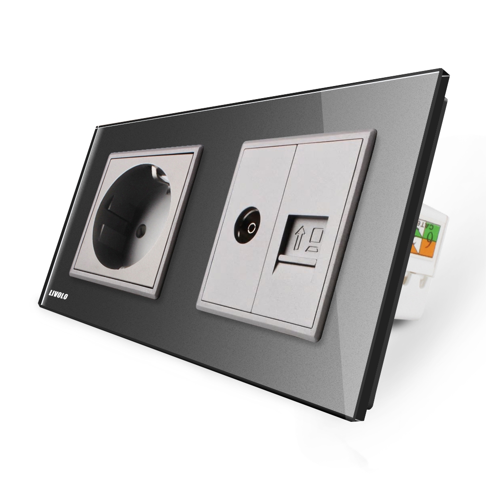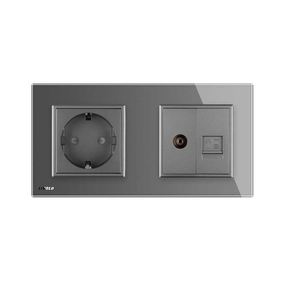 Priza dubla Livolo cu rama din sticla 1 priza Schuko+TV/internet SmartElectro IntelligentHouse