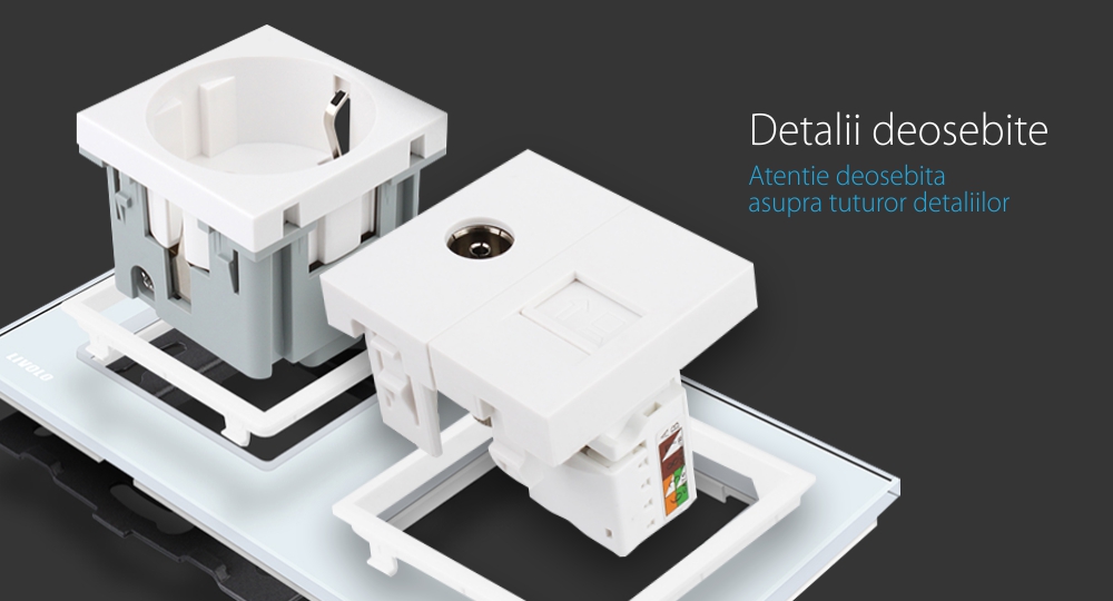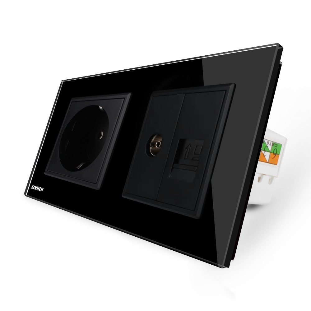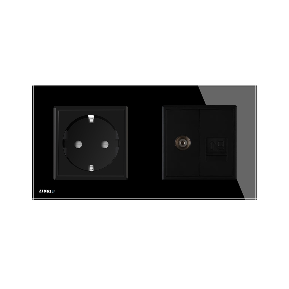 Priza dubla Livolo cu rama din sticla 1 priza Schuko+TV/internet SmartElectro IntelligentHouse