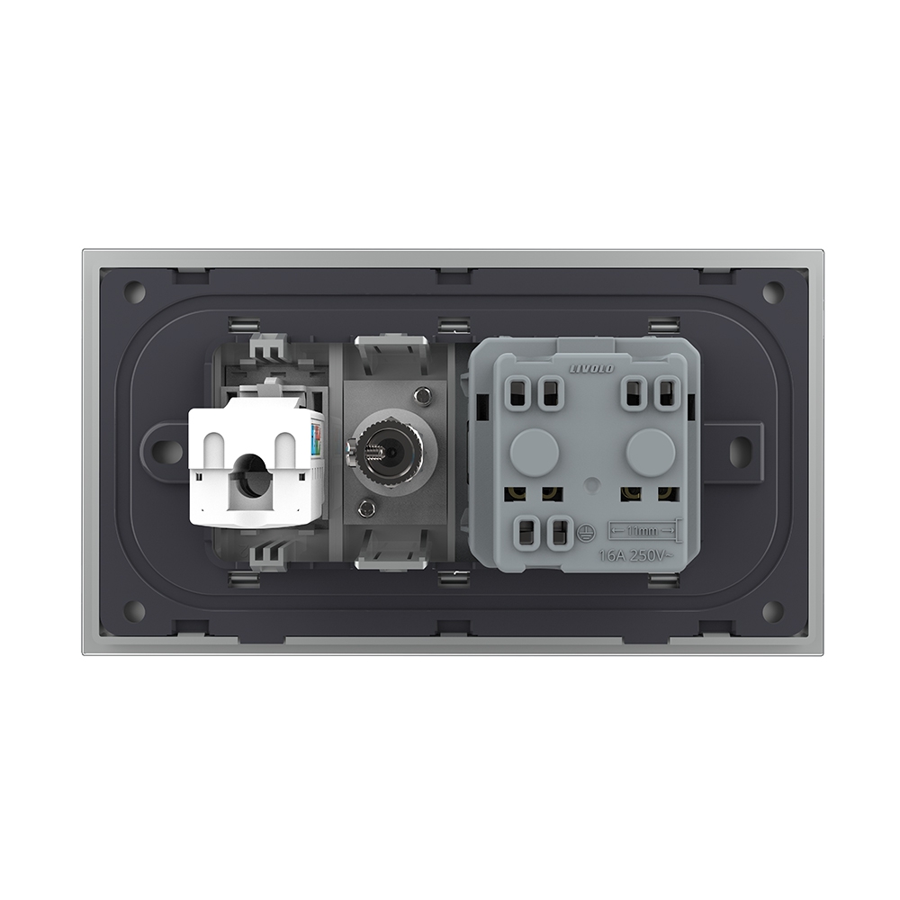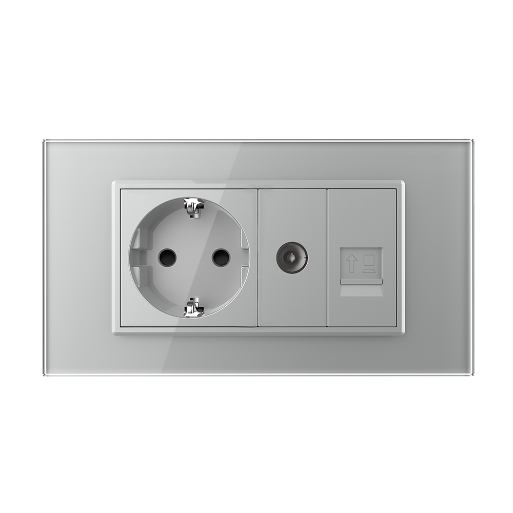 Priza Dubla Livolo cu Rama din Sticla 1 Priza Schuko+TV/internet, Standard Italian - Serie Noua SmartElectro IntelligentHouse