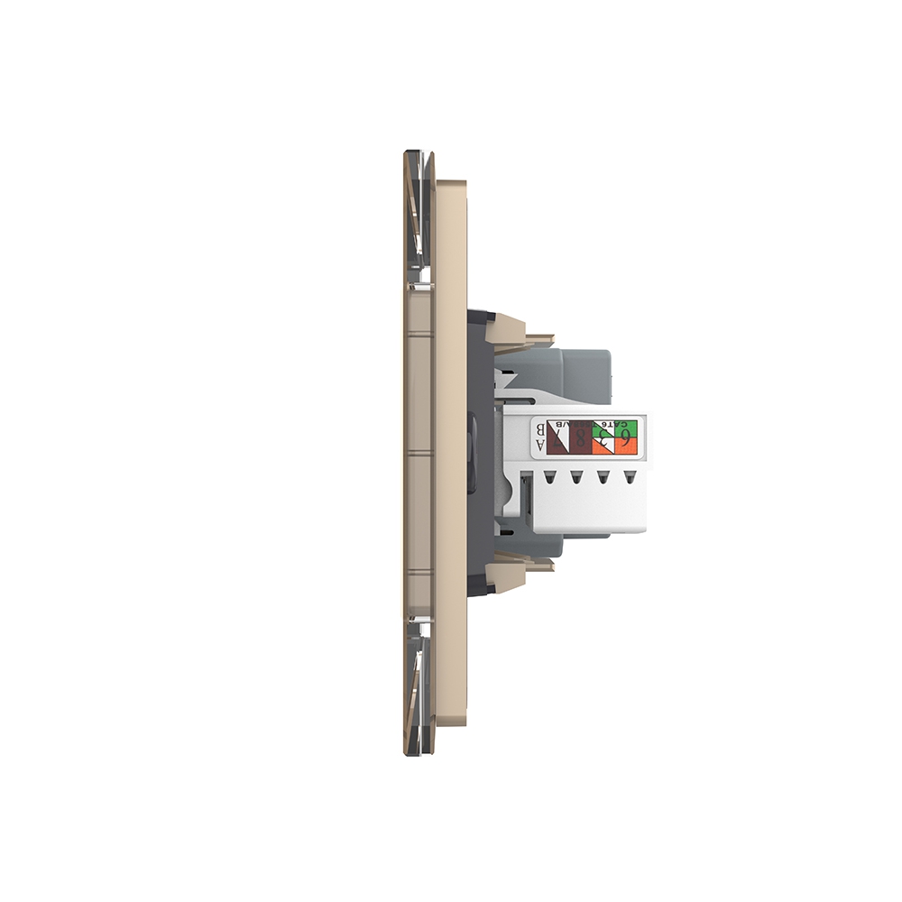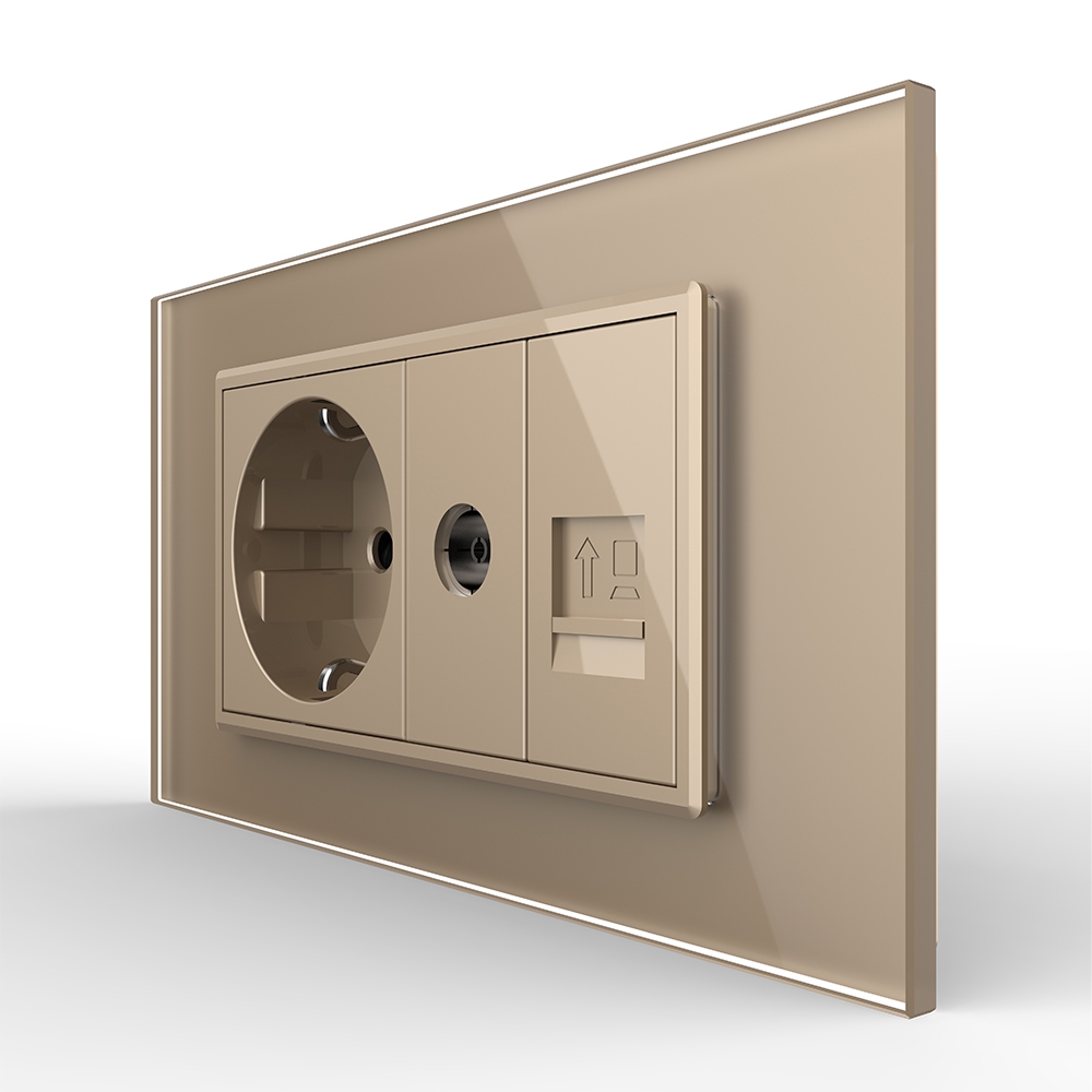 Priza Dubla Livolo cu Rama din Sticla 1 Priza Schuko+TV/internet, Standard Italian - Serie Noua SmartElectro IntelligentHouse