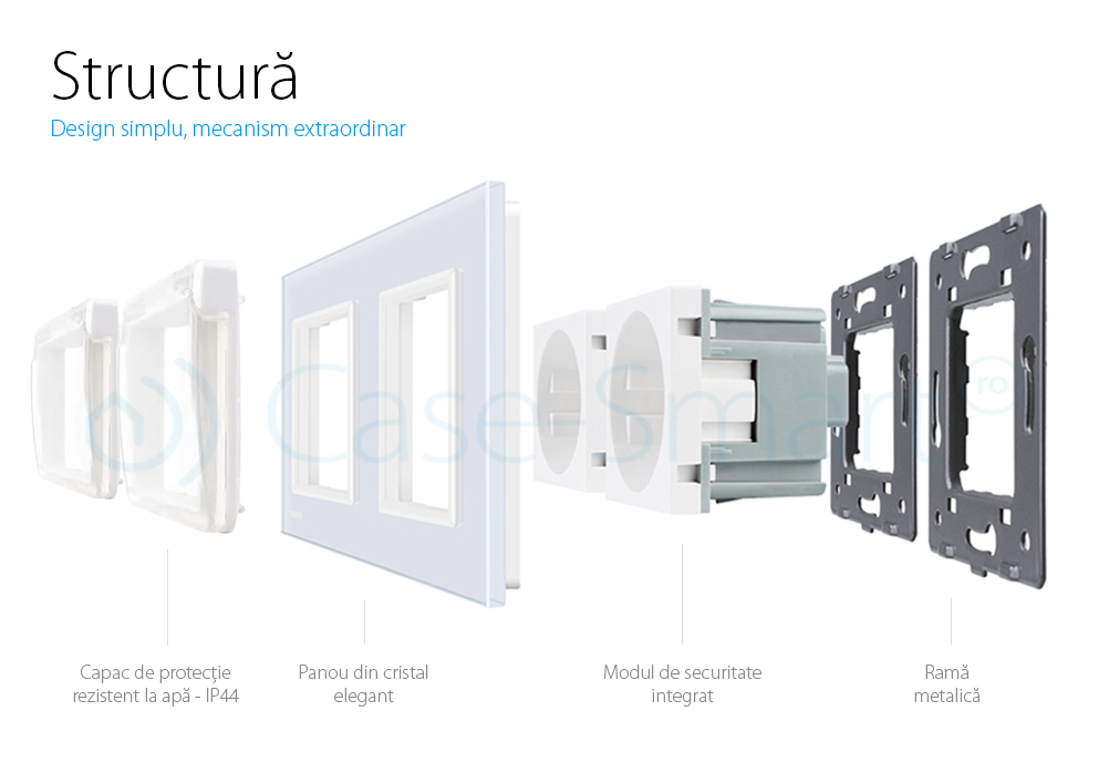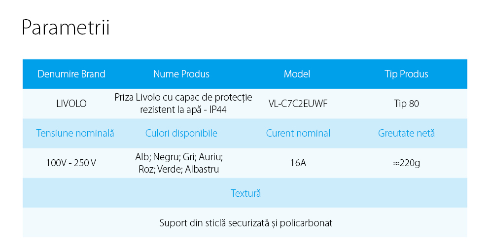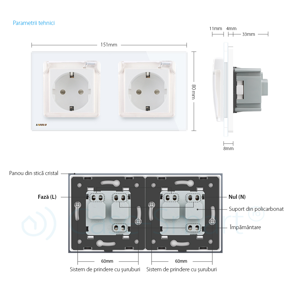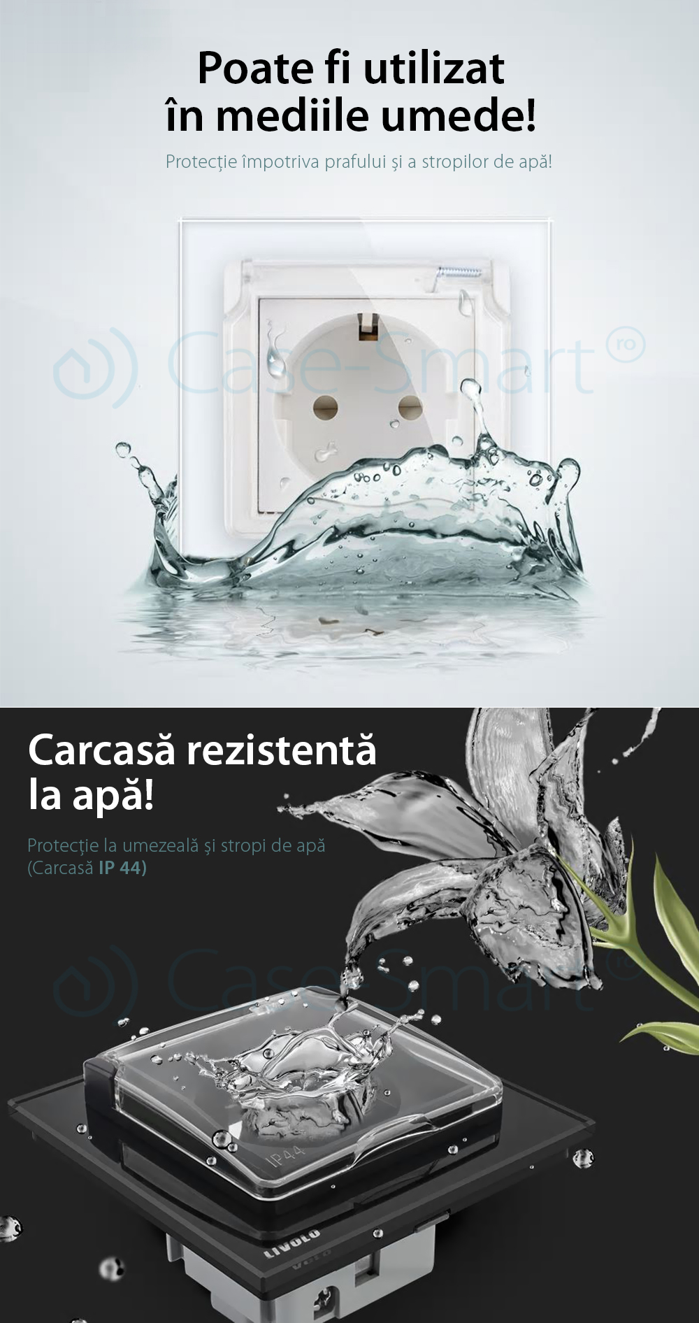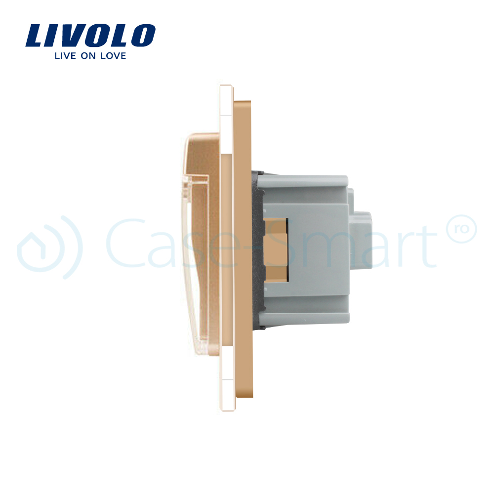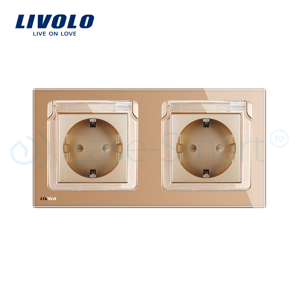 Priza dubla Livolo cu rama din sticla si capac de protectie rezistent la apa SmartElectro IntelligentHouse