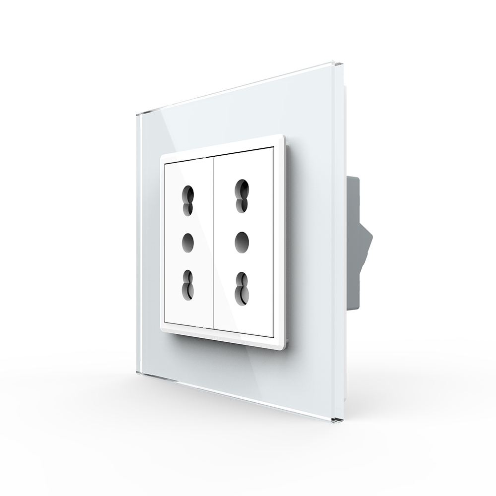 Priza dubla module inguste Livolo cu rama din sticla - standard german SmartElectro IntelligentHouse
