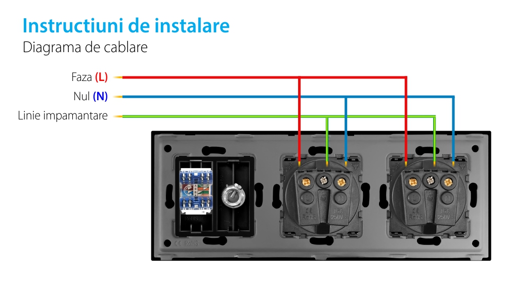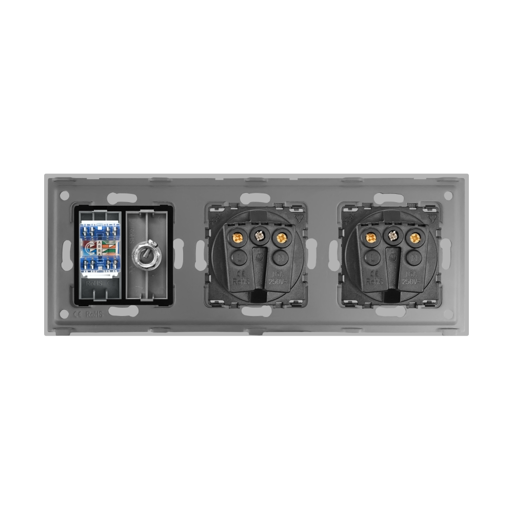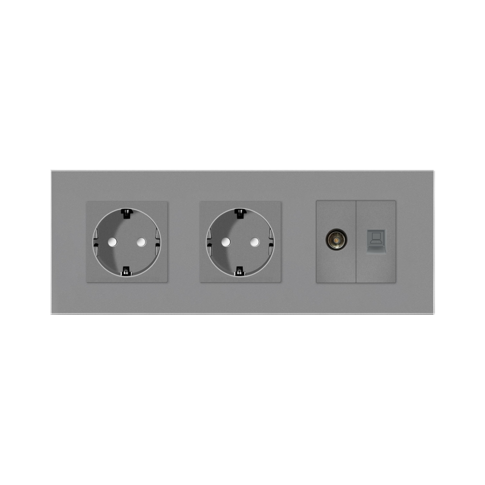 Priza Dubla Schuko + TV + Internet cu Rama Din Sticla LUXION SmartElectro IntelligentHouse