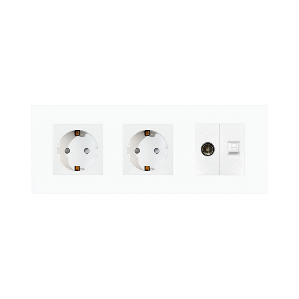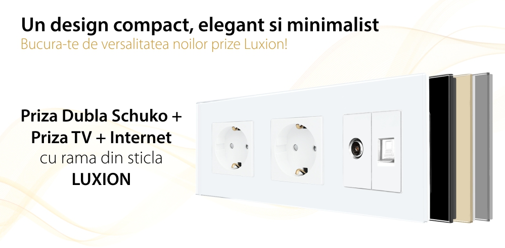 Priza Dubla Schuko + TV + Internet cu Rama Din Sticla LUXION SmartElectro IntelligentHouse