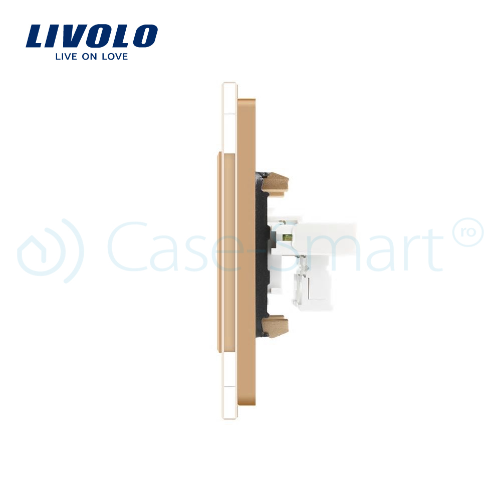 Priza dubla Telefon Livolo cu rama din sticla SmartElectro IntelligentHouse