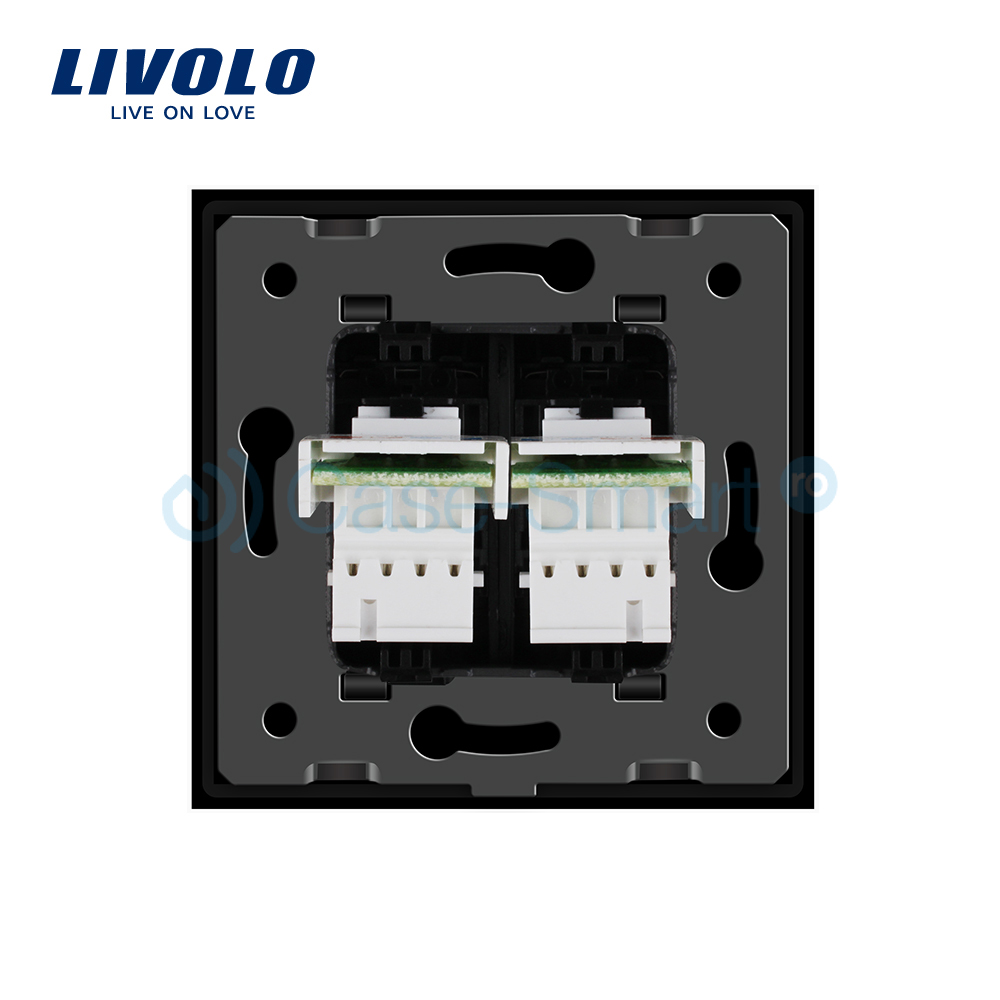 Priza dubla Telefon Livolo cu rama din sticla SmartElectro IntelligentHouse