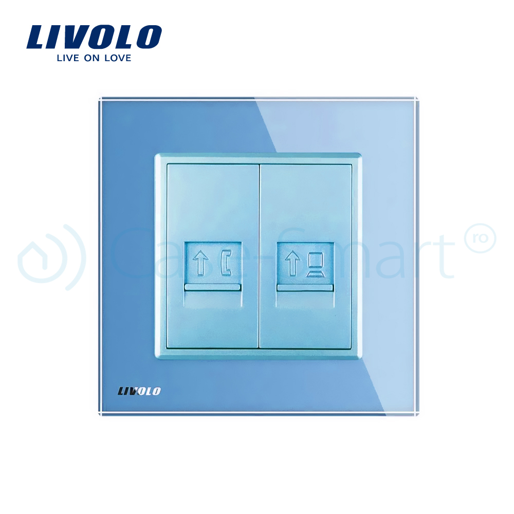 Priza dubla Telefon + Priza internet Livolo cu rama din sticla SmartElectro IntelligentHouse
