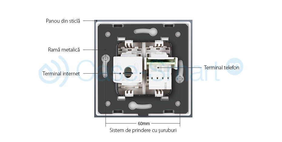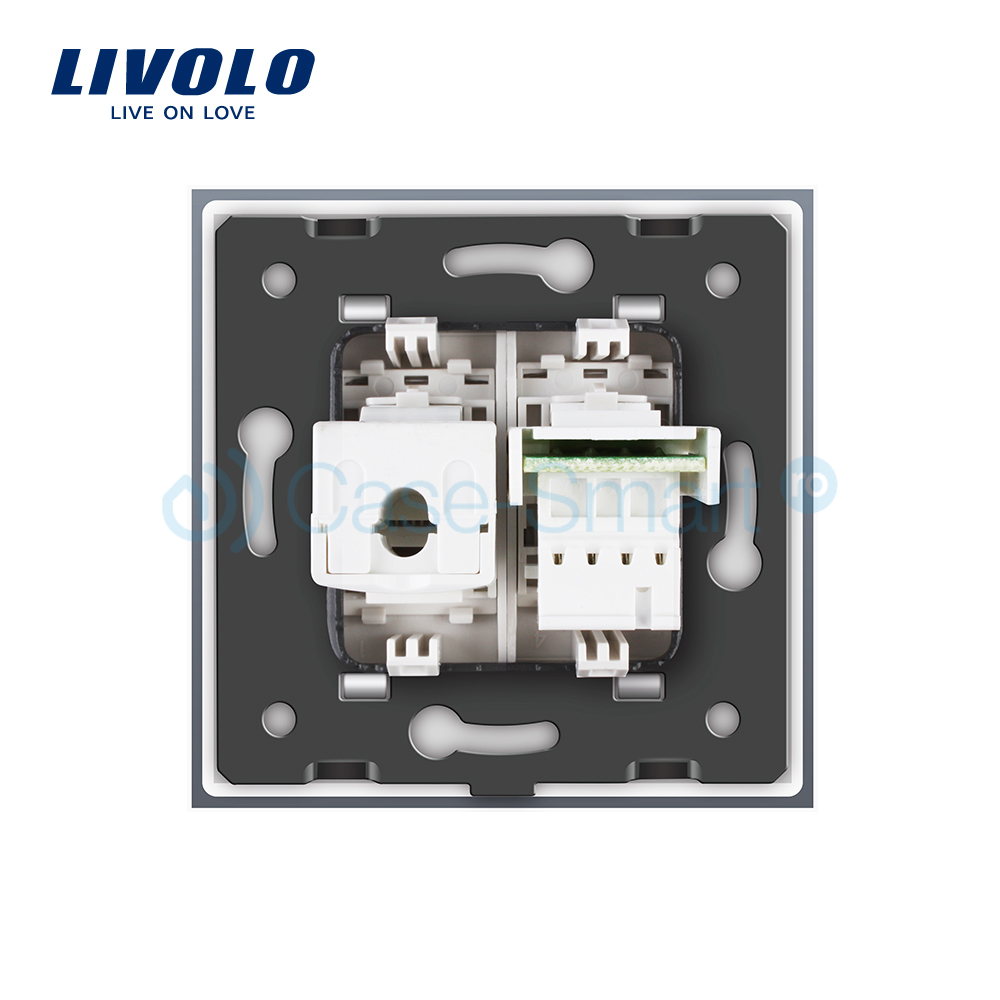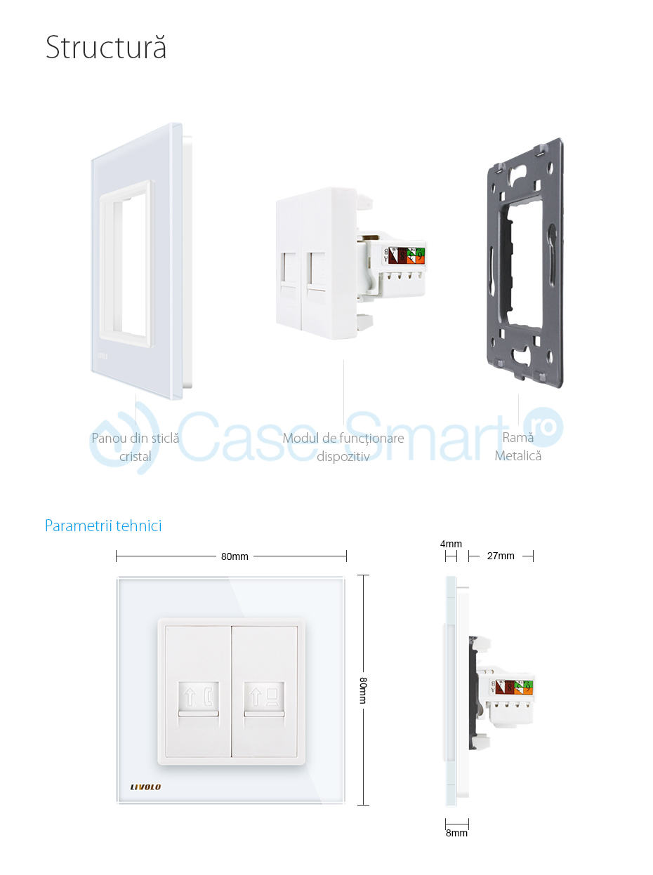 Priza dubla Telefon + Priza internet Livolo cu rama din sticla SmartElectro IntelligentHouse
