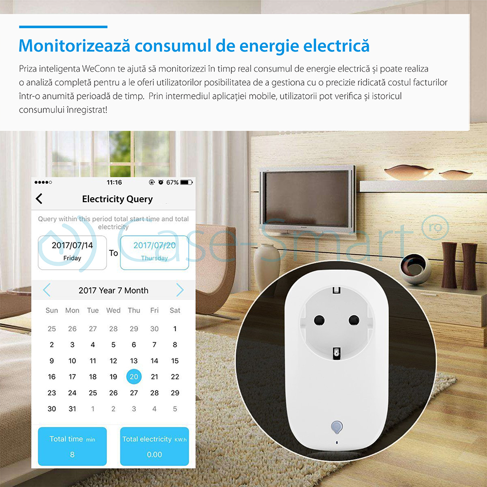 Priza inteligenta RedSun RS-S171, monitorizare de energie, compatibil Alexa, Control de pe telefonul mobil SmartElectro IntelligentHouse