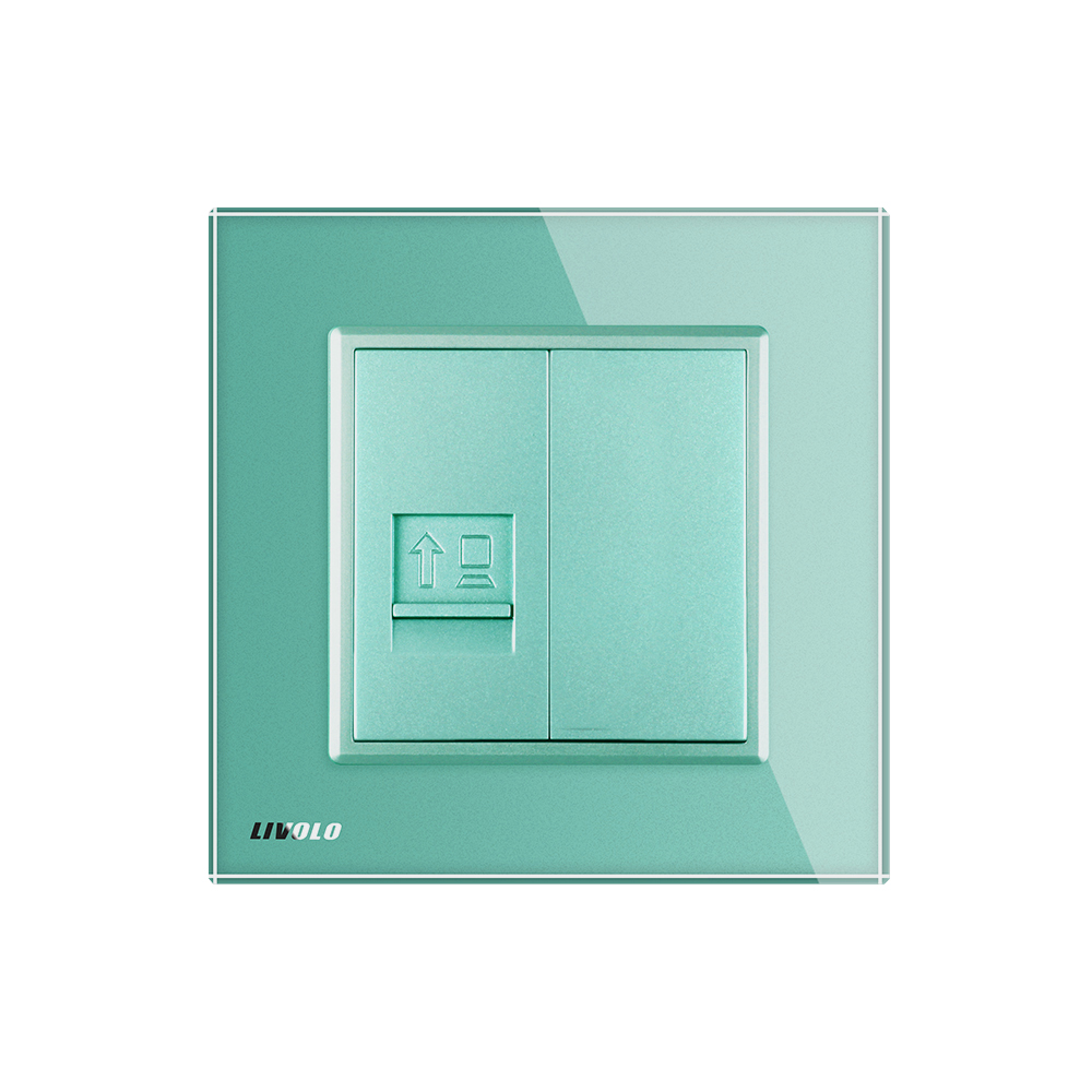 Priza Livolo cu rama din sticla pentru internet, o puteti combina cu alta priza media tip TV, Telefon, USB, audio si astfel ascundeti cablurile inestetice.