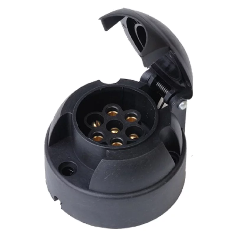 Capacul rabatabil ajută la protejarea contactelor împotriva murdăriei și umezelii, iar formatul cu 7 pini permite conectarea funcțiilor electrice uzuale ale remorcii, precum iluminarea și semnalizarea. Este o alegere potrivită pentru înlocuirea unei prize uzate sau pentru echiparea unei remorci noi.