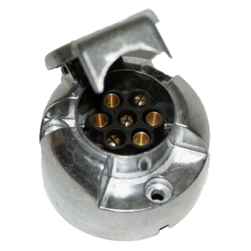 Priza remorca din aluminiu 7 poli 12V este o solutie practica si rezistenta pentru conectarea instalatiei electrice dintre autovehicul si remorca. Carcasa metalica din aluminiu ofera o buna protectie la uzura, iar configuratia cu 7 pini este potrivita pentru aplicatii uzuale la remorci, platforme sau alte sisteme tractate alimentate la 12V.