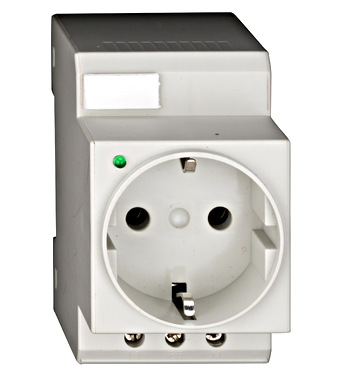 Priza Schuko pe sina DIN cu LED, 16A, 230V, pentru tablou electric