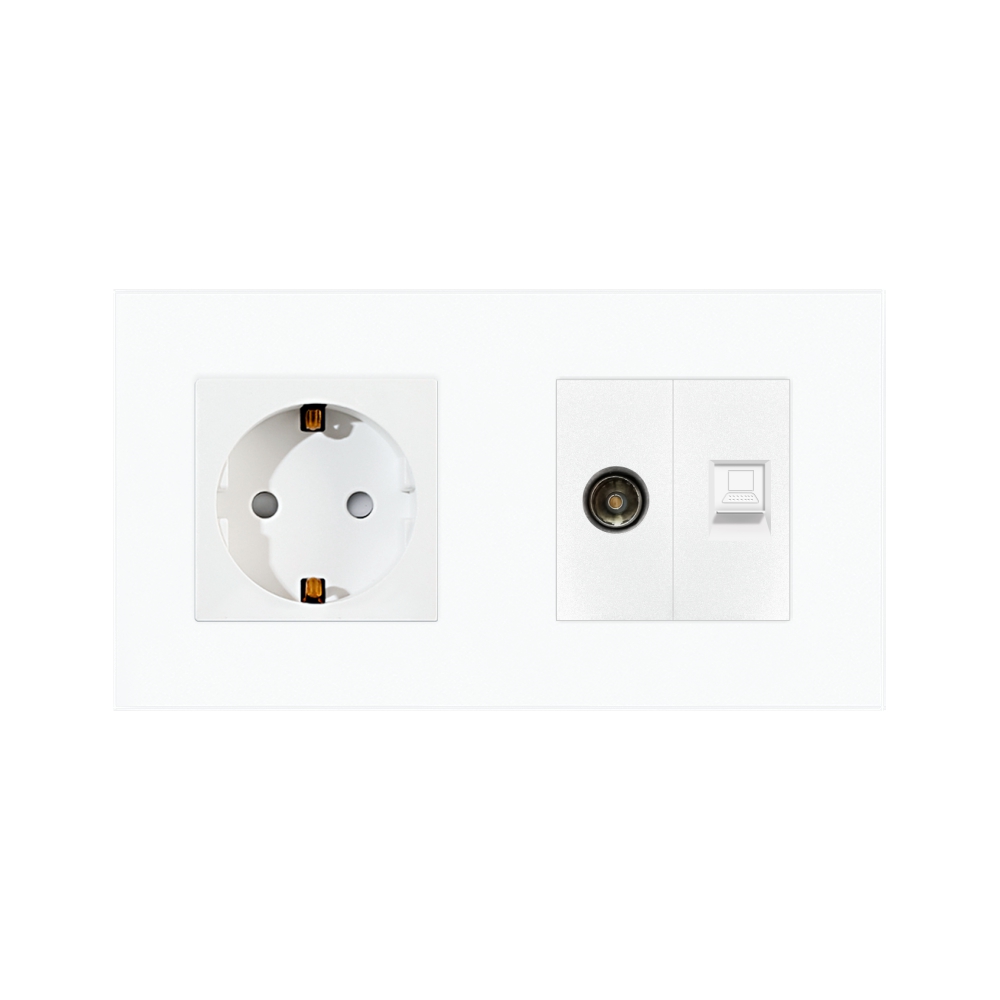 Priza Schuko + TV + Internet cu Rama Din Sticla LUXION SmartElectro IntelligentHouse