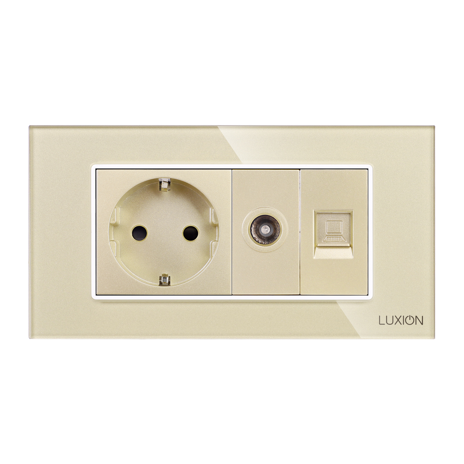 Priza Schuko + TV + Internet cu Rama Din Sticla LUXION, Standard Italian, 4M SmartElectro IntelligentHouse