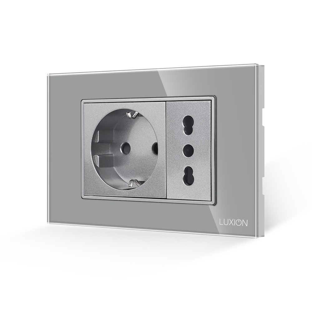 Priza Schuko + Universala Italiana cu Rama din Sticla LUXION, Standard Italian, 3M SmartElectro IntelligentHouse