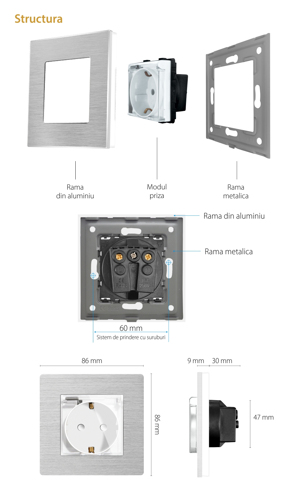 Priza Simpla cu Capac de Protectie LUXION cu rama din aluminiu SmartElectro IntelligentHouse
