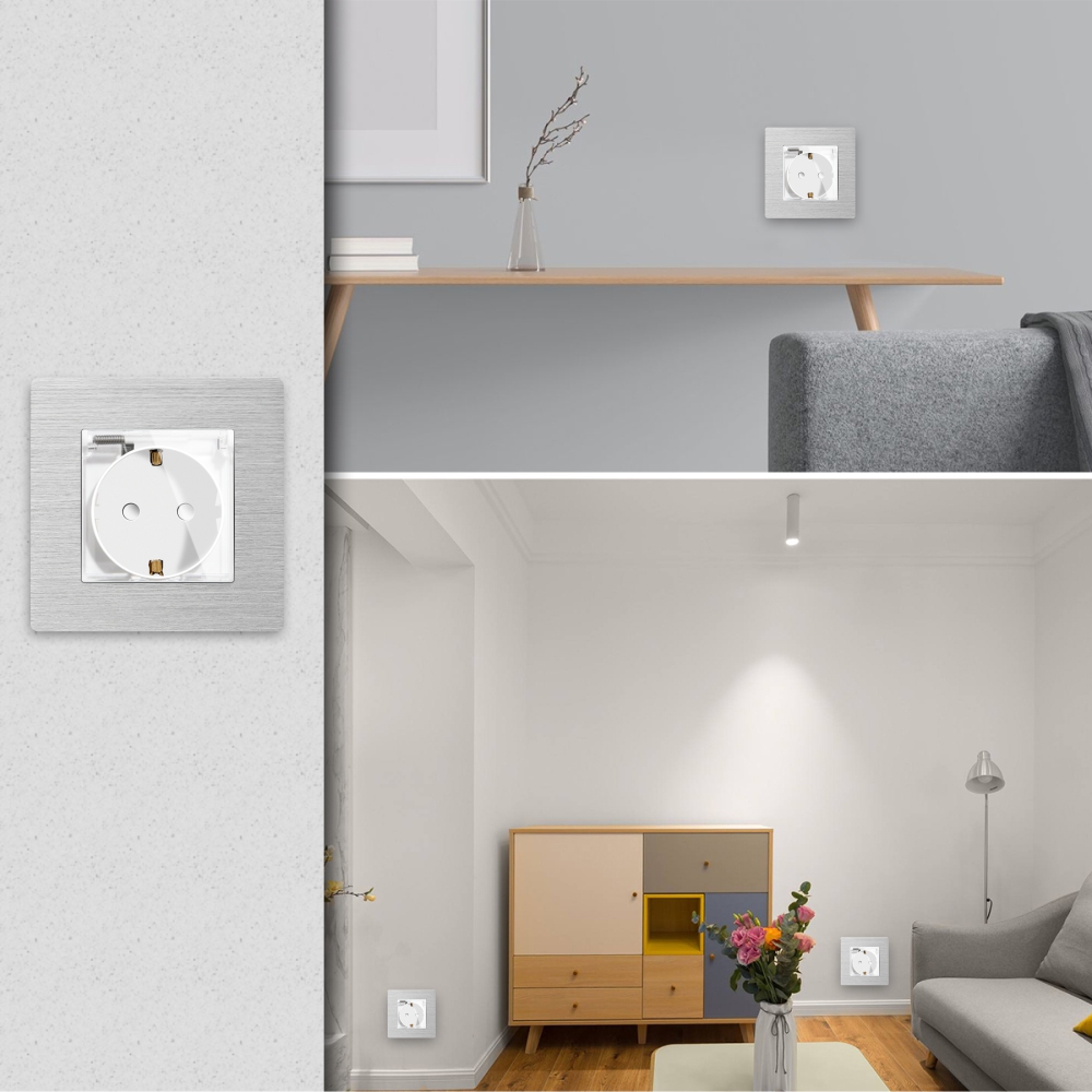 Priza Simpla cu Capac de Protectie LUXION cu rama din aluminiu SmartElectro IntelligentHouse