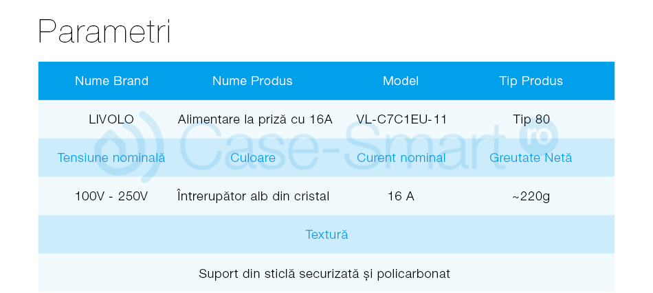 Specificatii Priza simpla Livolo rama sticla SmartElectro