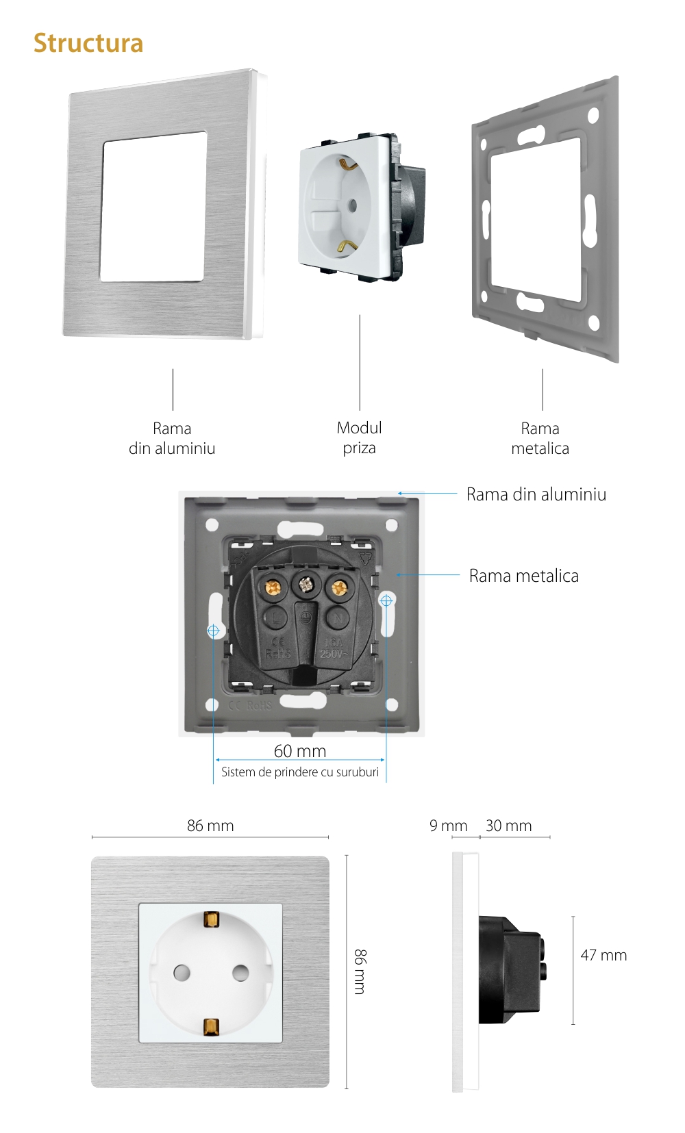 Specificatii Priza Simpla LUXION rama aluminiu SmartElectro