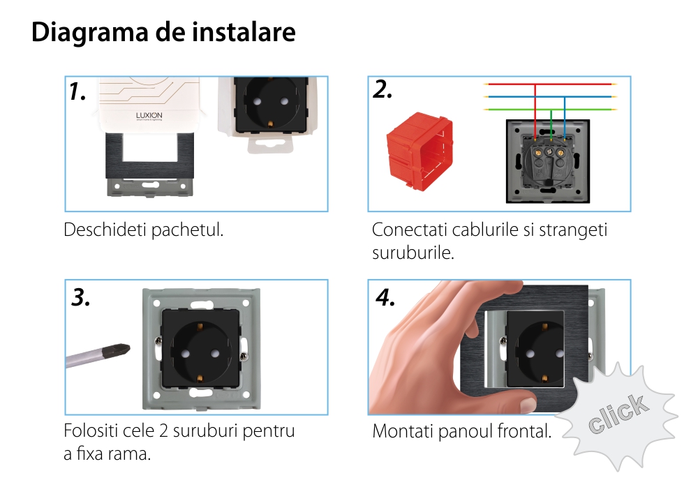 Specificatii Priza Simpla LUXION rama aluminiu SmartElectro