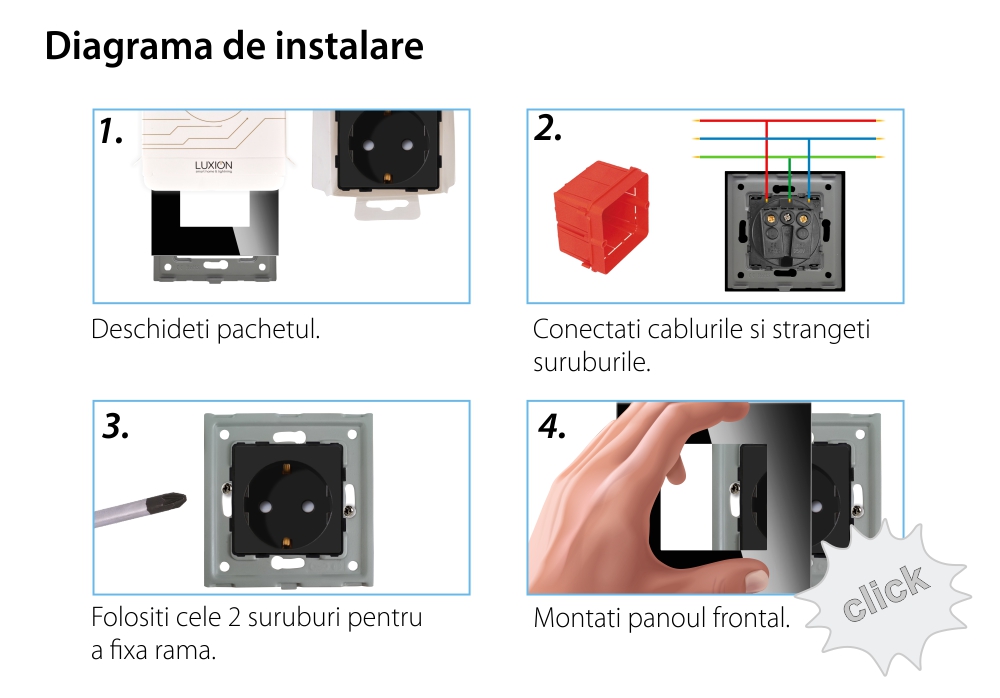 Prizele LUXION se diferentiaza prin design-ul compact, elegant si minimalist. Sunt versatile, dispun de protectie pentru copii, iar tehnologia de ultima generatie favorizeaza economisirea de energie. Structura este durabila, iar prizele nu se decoloreaza in timp. Este un produs practic, fabricat din materiale de calitate si rezistent in timp, ce ofera utilitate si confort casei tale.
