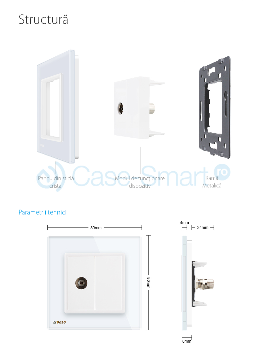 Priza simpla TV Livolo cu rama din sticla SmartElectro IntelligentHouse