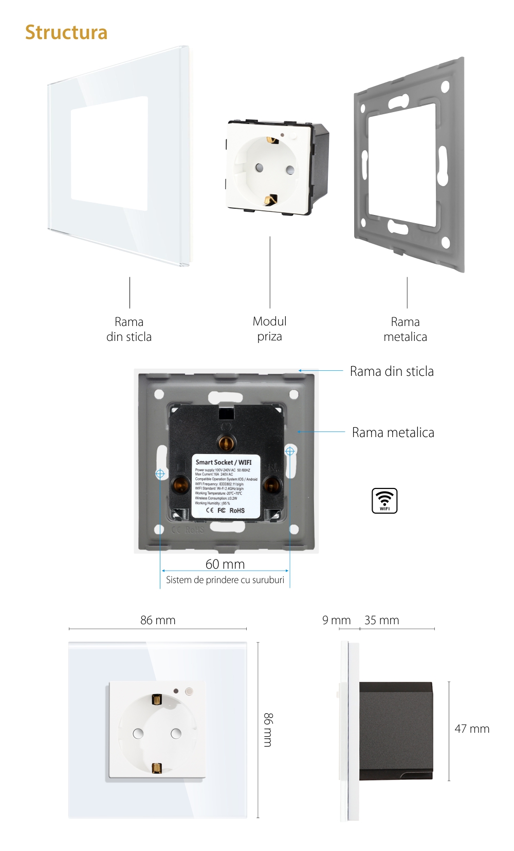 Recenzii Produse Priza Simpla Wi-Fi LUXION Rama Sticla