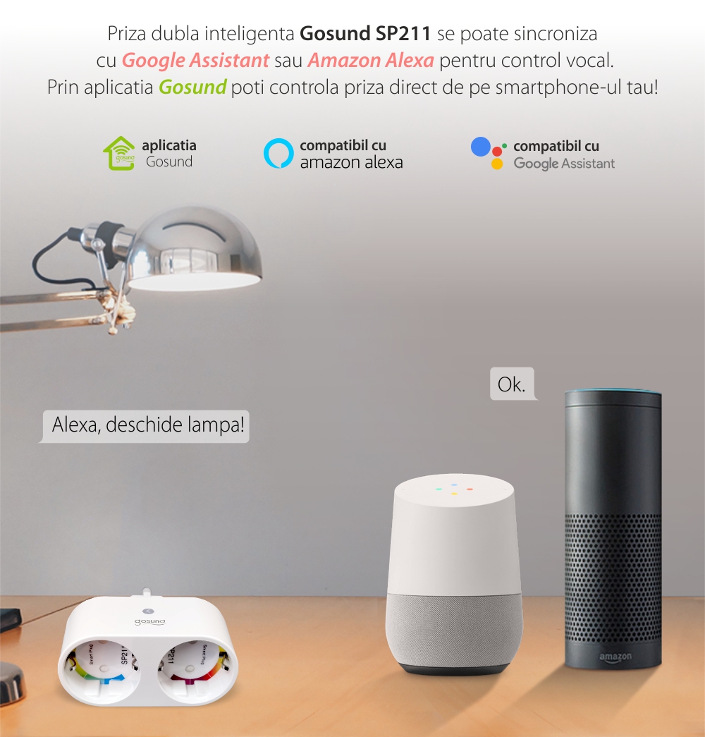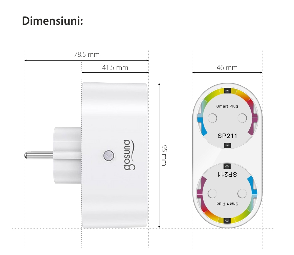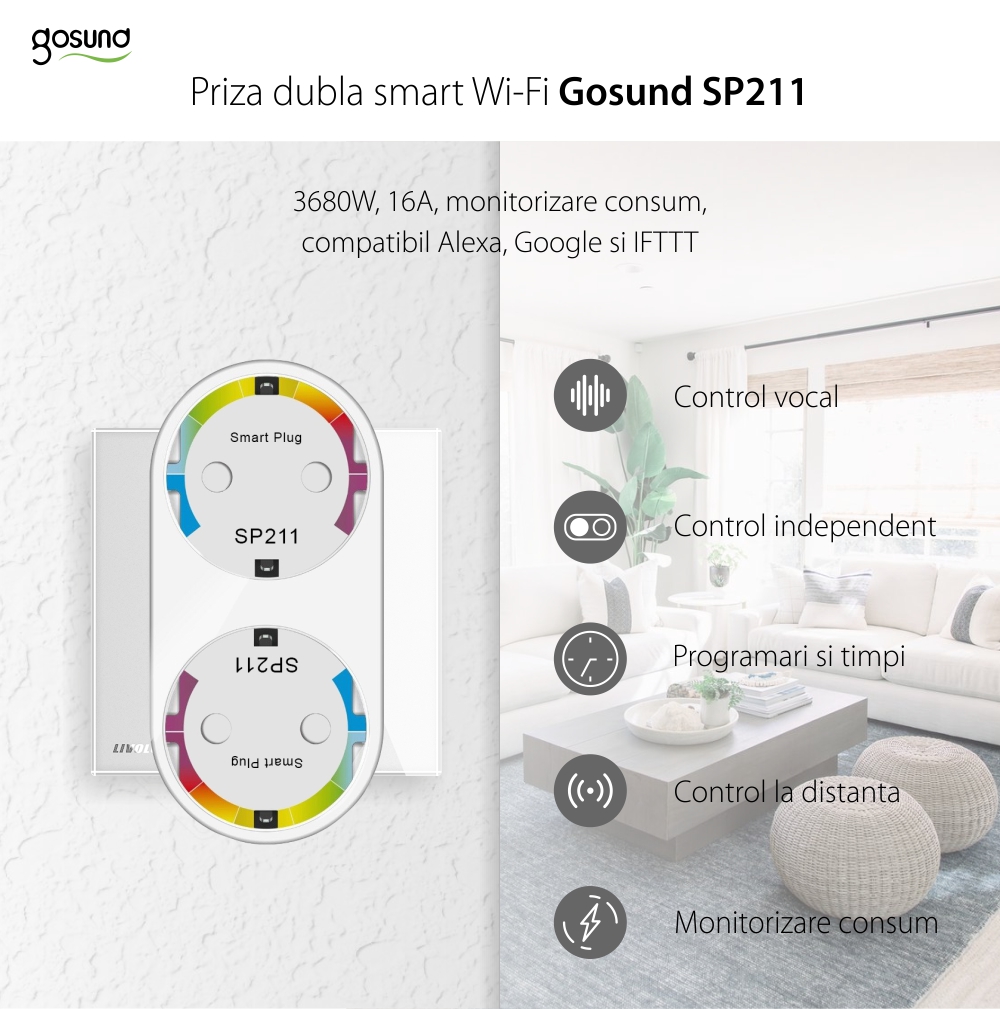 Priza smart dubla Gosund SP211, Control prin aplicatie, Programare si timer Putere max. 3680 W, Curent 16 A SmartElectro IntelligentHouse