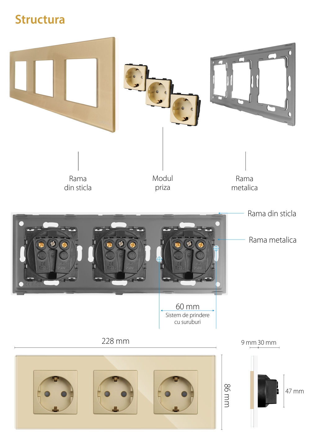 Specificatii Priza Tripla Rama Sticla LUXION SmartElectro