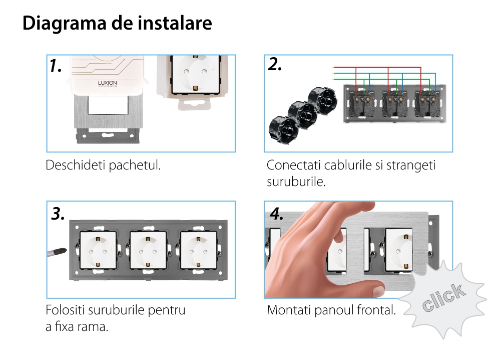 Specificatii Priza Tripla LUXION rama aluminiu SmartElectro