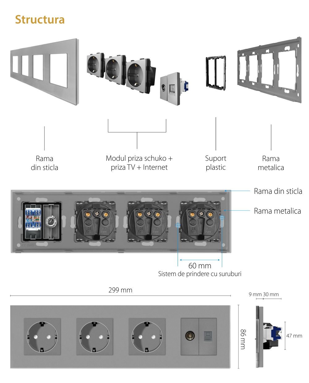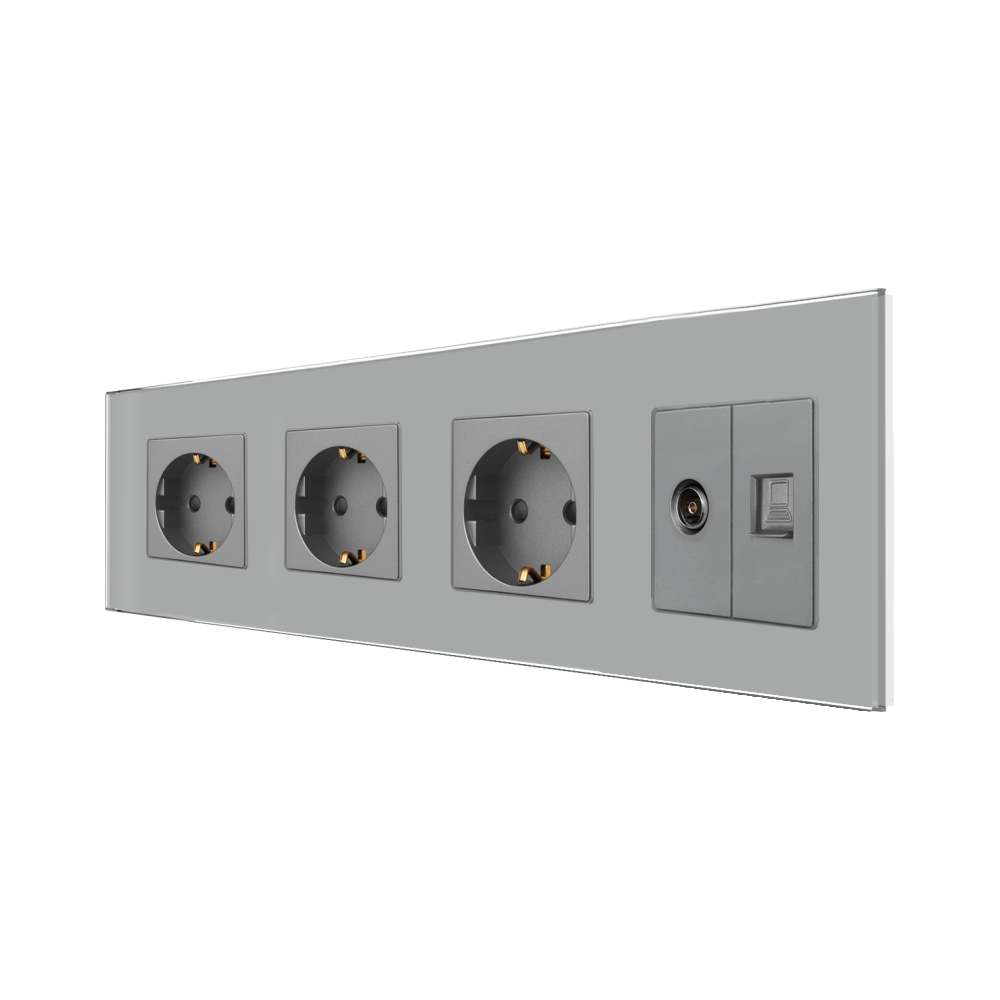 Priza Tripla Schuko + TV + Internet cu Rama Din Sticla LUXION SmartElectro IntelligentHouse
