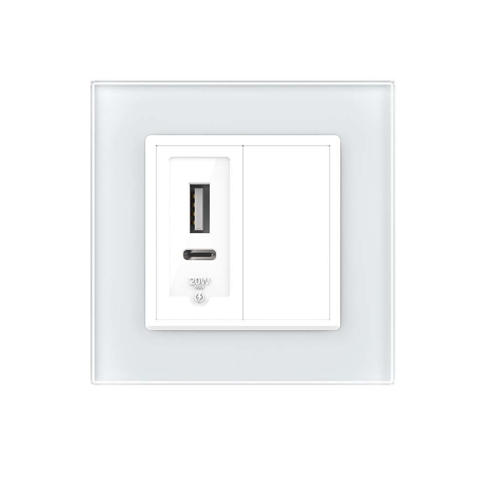 Priza USB-A + USB-C cu doua porturi de incarcare cu o putere totala de 20W. Accepta protocoale PD, QC, FCP, AFC, APPLE 5V/2.4A, BC1.2 DCP etc. In timp ce dispozitivele sunt conectate, priza va determina automat cea mai buna metoda de incarcare.