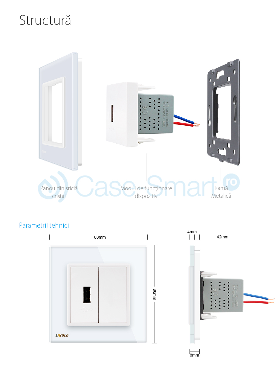 Specificatii Priza USB Livolo rama sticla SmartElectro