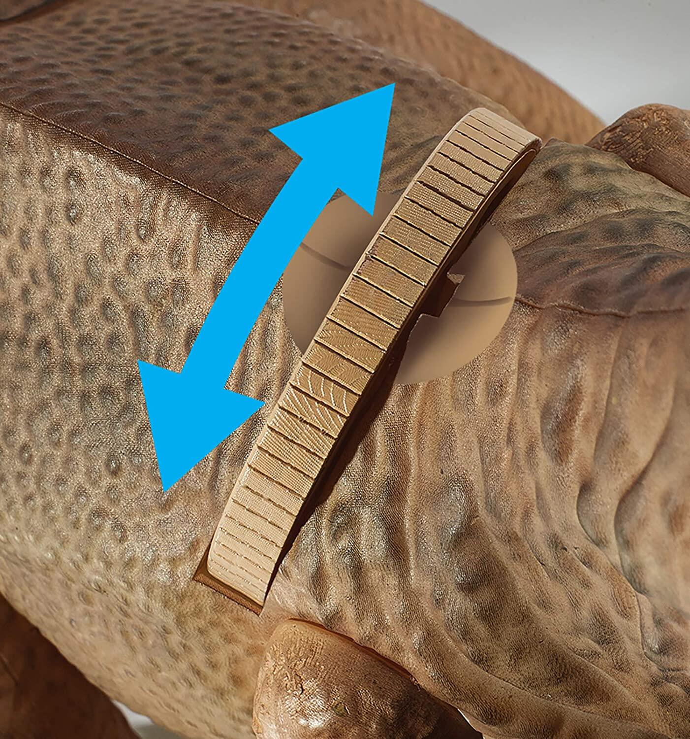usor de utilizat: trebuie doar sa alegi discul si sa il introduci in spatele dinozaurului si apoi sa rotesti de el pentru a schimba imaginea