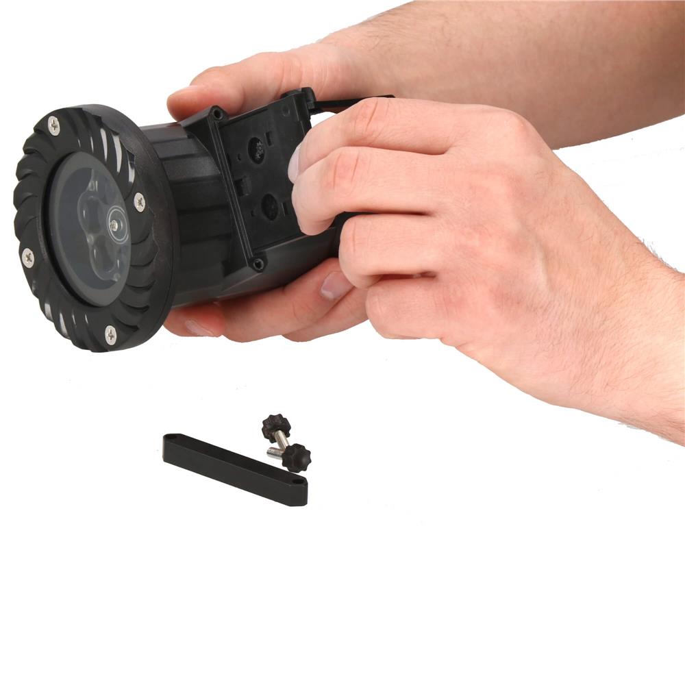 Dispozitivul este usor de instalat, poate fi fixat in sol sau asezat pe podea si iti permite sa reglezi unghiul de proiectie in functie de spatiu. Cu ajutorul telecomenzii incluse poti schimba motivele, regla viteza si seta timpul de functionare, pentru un plus de confort. Datorita protectiei ridicate, acest proiector decorativ LED este potrivit atat pentru utilizare la interior si exterior, inclusiv la temperaturi scazute.
