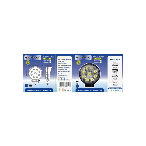 Imbunatateste vizibilitatea pe drumuri intunecate sau in teren dificil cu acest proiector LED auto 27W tip Flood Beam 60°, proiectat pentru o iluminare larga si uniforma. Functioneaza pe 12–24V, fiind ideal pentru autoturisme, SUV, ATV, camioane si utilaje.