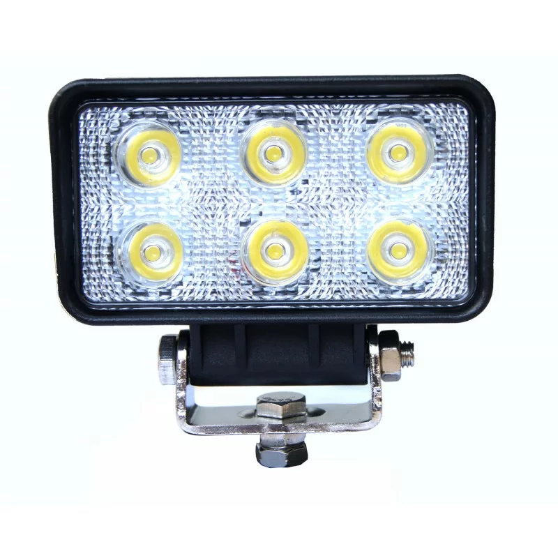 Cu 6 LED-uri de 3W, acest proiector de lucru LED oferă o lumină albă rece, clară, potrivită pentru vizibilitate bună în timpul manevrelor, lucrărilor de service sau activităților desfășurate pe timp de noapte. Funcționează la 12V și 24V, fiind compatibil cu o gamă variată de vehicule și utilaje.