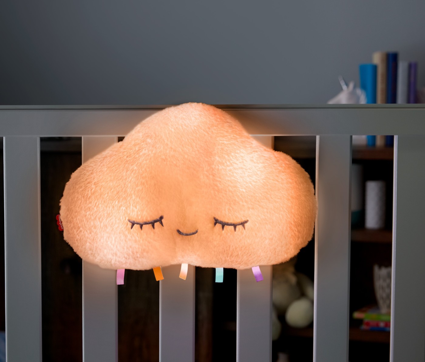 Proiectorul pernă norișor Fisher-Price este un companion delicat pentru rutina de somn a bebelușului. Realizat din material textil moale, acest norișor cu lumini și sunete creează o atmosferă calmă și reconfortantă prin lumini multicolore, melodii line și zgomot alb. Se atașează ușor la pătuț, dar poate fi folosit și ca jucărie de alinare în brațe sau în cameră.