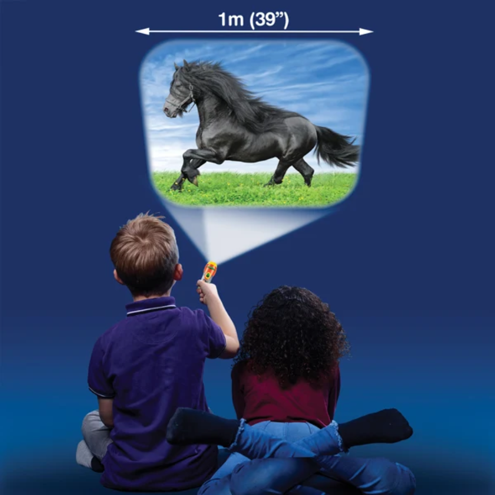 Proiector tip lanterna – Caluti este o jucarie interactiva si educativa care transforma orice camera intunecata intr-o lume magica plina de cai si ponei
