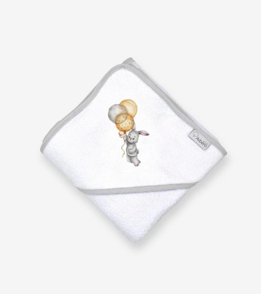 Prosop de baie pentru bebelusi Klups Bunny cu capison, 100x100 cm