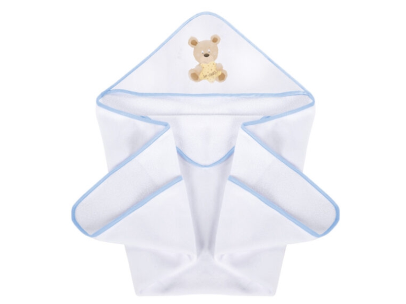 Prosopul de baie pentru bebelusi Klups Teddy Blue este alegerea potrivita pentru momentele de dupa baita, oferind confort, caldura si o atingere delicata. Realizat din material moale si pufos, acest prosop bebe cu capison ajuta la uscarea rapida a pielii si protejeaza copilul de senzatia de frig. Designul in nuante alb-albastru, completat de aplicatia decorativa cu ursulet, il face practic si adorabil in acelasi timp.