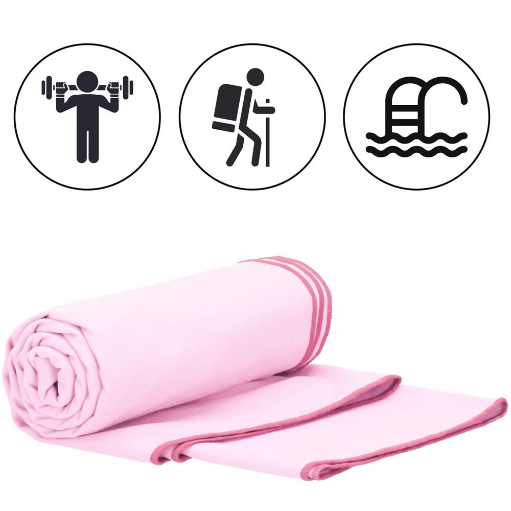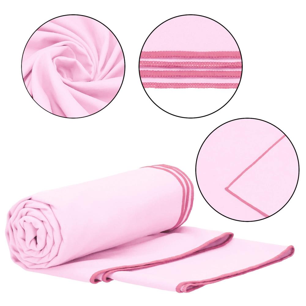 Prosop de plajă din microfibră cu uscare rapidă și husă, 40x80 cm, roz