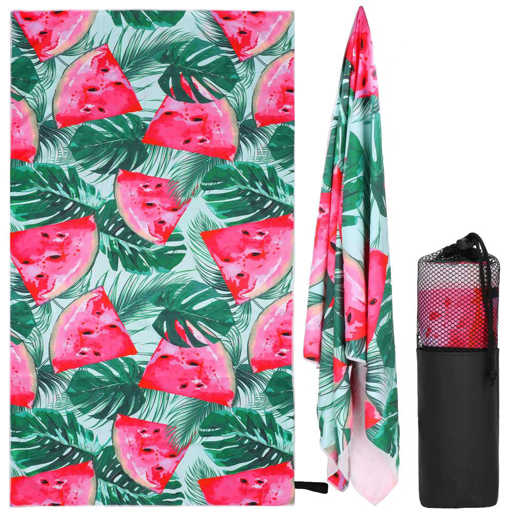 Prosop de plajă din microfibră cu uscare rapidă și husă, 90x180 cm, pepene verde